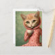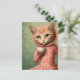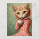 A cat in a pink sweater dress holds a coffee funny AI generated art