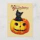 Vintage Ellen Clapsaddle Halloween postcard from series 1237 showing a very cute cat sitting in a pumpkin. Reprinted on this Halloween postcard.