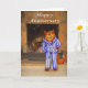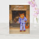 A cartoon of a ginger cat in stripy blue and white pyjamas, standing in a doorway. " Happy Anniversary" Is written at the top.