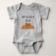 Cute, funny photo of a pile of Halloween candy corn with a cat's angry green eyes looking, and brown ears poking through. The sentiment, "Happy Halloween! (Meow!)," which is customisable, of course! The kitty looks a little annoyed, like she didn't really mean to get stuck in a pile of candy corn. Maybe it isn't her favourite candy anymore. Boo! Here she is on such a cute baby bodysuit.