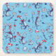 Cat In The Hat | Blue Pattern Square Paper Coaster
