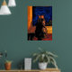 This poster features a gorgeous golden, orange and brown tortoiseshell cat sitting on a red pillow, staring out the window into a midnight blue sky. She casts a shadow on the gold coloured wooden windowsill. I have digitally enhanced my original photograph to achieve a painterly effect.