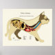 Cat anatomy poster. Female body cavity, reproductive system, heart, stomach, and intestines. The illustration is hand drawn for a unique look in your veterinary clinic.