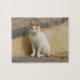 A white and ginger cat against a rustic wall. A beautiful cat jigsaw puzzle for any cat lover.