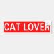 Banner style design. Red lettering on a bright red background that says "Cat Lover."