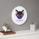 Cat Lover Cute Black Purple Gold Customized Name Large Clock