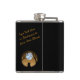 The flask itself is fine. It’s a cheap flask, obviously bought in bulk, however am prepared to overlook that. Given that it is a personalized item, I would have liked to have seen gift boxing instead of the generic packaging. Terrible printing, and/or quality. It’s a cheap, tacky vinyl. It is not cut straight and is also applied in a way that it is overhanging the bottom, causing the glue to catch on items and it will eventually roll and tear, damaging the wrap.
