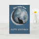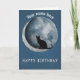 Black Cat on a cresent Moon - Black cat silhouette sitting on a crescent moon design with a rich blue midnight starry sky background & Happy Birthday message.