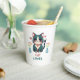 Cute kawaii teal colour cat sitting between two flower vases and heart on each side with text reads Cat Lover. This is a great gift for cat lovers.