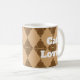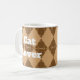 Surprise a cat lover with this morning coffee or tea mug featuring a pattern of geometric diamonds that display a brown wildcat pattern. The circles and triangles form a diamond pattern that encircles the mug. "Cat Lover" appears on both sides of the mug and can easily be customised if you desire.