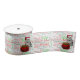 Great Christmas ribbon for the cat lover! A cute silver tabby cat wearing a Santa Hat sits against a red and green multi-lingual word art for the holiday season.