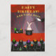 Naughty birthday cats observe the rabbit in the magic hat with bad intent. This cute card depicts an imaginary cat birthday party with a magician performing the famous Rabbit out of the hat trick. behind the stage, mischief is in the making! choose this card for your cat lover friends and add the age to wish the a very personal "magical" year ahead.