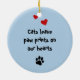 A special ornament in pale blue for you to customize with the name and photo of your wonderful cat - or any other pet. Celebrate them while they are alive; remember them after they pass on. On the front, the photo of your pet is set inside a heart-shaped frame made from red paw prints. Underneath, the text is "My best friend", or you can edit this, enter a name instead for example. On the back, the text (also editable) is "Cats leave paw prints on our hearts". There is an additional paw print and hearts for decoration.