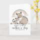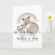 This greeting card features a soft pastel illustration of a mother cat and her kitten sharing a gentle moment under a muted rainbow. The simple composition highlights warmth and connection, making it perfect for a first Mother’s Day message. The design includes names and a year, adding a meaningful detail. The soft tones and clean layout make this card a thoughtful and emotional way to celebrate the occasion.