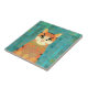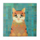 Cat moroccan mosaic ginger on turquoise background ceramic tile