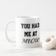 Cat mug with the image from the oil painting by YaneyaArt with the statement: you had me at meow.