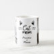 Cute personalizable coffee mug for any cat lover featuring the wording "Cat mum" in modern black lettering decorated with lovely cat ears and adorable whiskers. Easily customisable with two pictures of your cat or cats and their names.