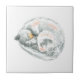 This decorative tile features a hand drawn life sketch of a very cosy sleeping cat. Artwork: Colour pencil on paper. Copyright: Dominic A. White. All rights reserved.