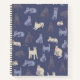 This notebook features a charming pattern of stylised cats in various poses, from lounging to stretching. The cats are rendered in soft, muted tones of grey, cream, and a hint of blue, creating a calming and sophisticated look. It's like a little chorus of cats taking a nap or just hanging out! The simple, almost geometric shapes give the cats a modern and minimalist feel, while still being undeniably adorable.