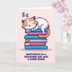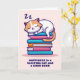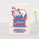 This adorable, personalised greeting card is perfect for anyone who loves cats and good books. The design is made in bright shades of pink, blue, and orange with a calico kitty cat perched on top of a book stack, snoozing. The front text currently says, "Happiness is a Sleeping Cat and a Good Book." The inside greeting includes, "Wishing you a purr-fect birthday!" You can keep that text or change it to your own using the easy template field. These cards make the perfect gift for any reader, English teacher, writer, librarian, or proud bookworm.