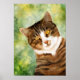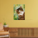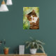 Cat On a Tree Drawing Green Yellow Brown Poster