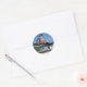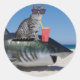 CAT ON BEACH SHARK CLASSIC ROUND STICKER