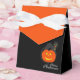 Cat on Pumpkin, Halloween Favour Bag. Great for Halloween, Birthdays e.t.c. A cute cat wearing a witches pentagram symbol around her neck whilst perched on top of a Halloween pumpkin.
