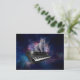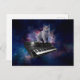 Cat on synthesizer in space postcard