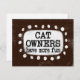 "Cat Owners Have More Fun" is a cute text design in brown with black text, along with a white accent shape and white textured whimsical dots surrounding it.