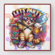 A cheerful cat wears sunglasses, holds a beer, and leans against a skateboard, embracing a lively party vibe with colourful decorations around.