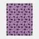 A warm and cozy fleece blanket featuring a cute pattern of cats in different poses in black on a purple background. Makes a great gift for a cat lover who likes the color purple or use it as a pet blanket for your kitty!