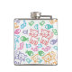 The flask itself is fine. It’s a cheap flask, obviously bought in bulk, however am prepared to overlook that. Given that it is a personalized item, I would have liked to have seen gift boxing instead of the generic packaging. Terrible printing, and/or quality. It’s a cheap, tacky vinyl. It is not cut straight and is also applied in a way that it is overhanging the bottom, causing the glue to catch on items and it will eventually roll and tear, damaging the wrap.
