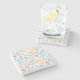 The coasters are gorgeous, a quality feel and heavy weight. They look like a precious archeological find. A rustic stone juxtaposed with a modern floral black and white print. I like the way the print goes slightly imperfect on the cut stone edges giving them a kind-of natural beauty.