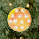 Cat paw print pattern. White paws on watercolor background. Custom ceramic ornaments for cat lovers.