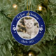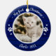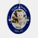 Cat Pet First Christmas Simple Photo Rustic Blue Ceramic Ornament