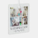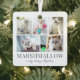 This simple and elegant boho-inspired square Christmas ornament is a sweet way to celebrate your cat during the holiday season. The design features a collage layout with space for five photos on both the front and back, making it a double-sided keepsake full of your favourite feline memories. Your cat's name is displayed underneath the collage on the front in a classic serif font, with a customisable line of text below it. You can leave it as "A Very Meowy Christmas," or change it to a short love note, "In Loving Memory," or "Forever in Our Hearts" for a memorial piece.