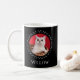 A cute pet cat photo mug that's customisable with your own favourite pet portrait. Featuring an elegant paw print frame surrounding a round image of your pet kitty. The perfect gift for a proud pet owner. Personalise the photograph, name and even the colour of the paw prints - just tap 'customise further'