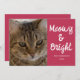 Cute Christmas photo card. Replace the photo with your own cat and change the name and year. Easy to do from the product page. White Meowy and Bright typography on pink background. A fun card to give friends and family this holiday season.