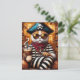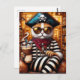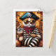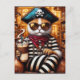 Cat pirate drinking icedcoffee encaustic art style postcard