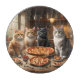 Pictured Are Four Cats Sitting Around A Table With A Pizza Ready To Eat.