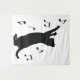Cat Playing with Musical Notes in Silhouette Tapestry