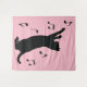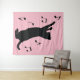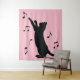 Cat Playing with Musical Notes in Silhouette Tapestry