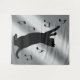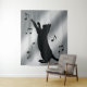 Cat Playing with Musical Notes in Silhouette Tapestry