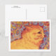 A fine art postcard with an animal illustration Cat Profile by the British artist Louis Wain (1860-1939). A portrait of a cute orange cat against a wallpaper background.