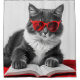 Cat Reading Book Selective Colour Red Splash of Colour