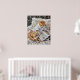 This adorable cat, captured reading a fashion magazine in bed, is a unique piece brought to life with AI and refined with authentic textures, making it a delightful addition to any wall.