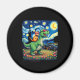 Cat Riding Dinosaur T-Rex Starry Night Cat Lover ( Magnet