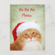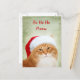 Long haired orange tabby cat dons his Santa hat and beard cat lovers custom Christmas postcard. Text can be easily changed or removed.