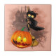 Cat Scared by Pumpkin Fun Halloween Character Ceramic Tile