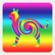 This colourful kitty cat, displays the colours of the rainbow, in an abstract twirl design, resulting in a multi-coloured spiral or swirl of vibrant and bright colours. This feline silhouette contains the seven main colours of the rainbow; red, orange, yellow, green, blue, indigo and violet. Some other colours that may also be seen are pink, cyan, and purple.